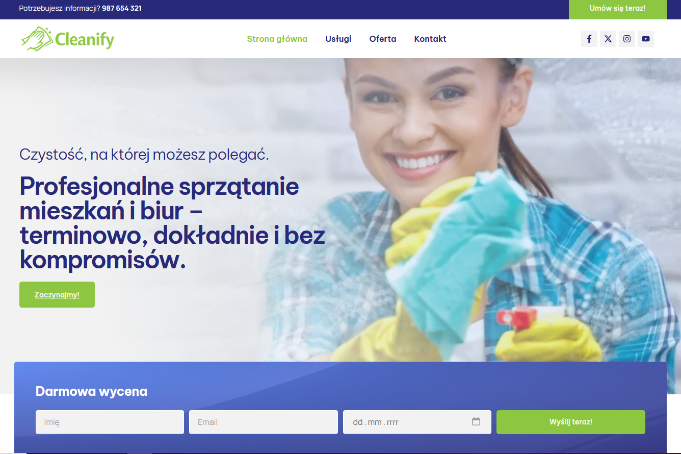 Przejrzysta, sprzedażowa witryna usługowa nastawiona na konwersję, jasno komunikująca ofertę i budująca wiarygodność lokalnej marki.